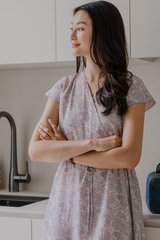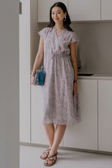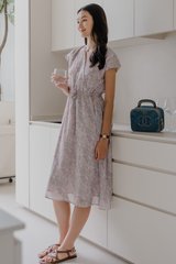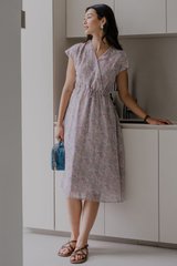 ACW Adjustable Waistband Wrap Midi Dress in Soft Lavender Florals