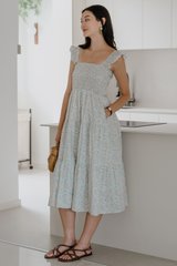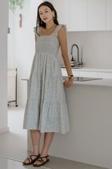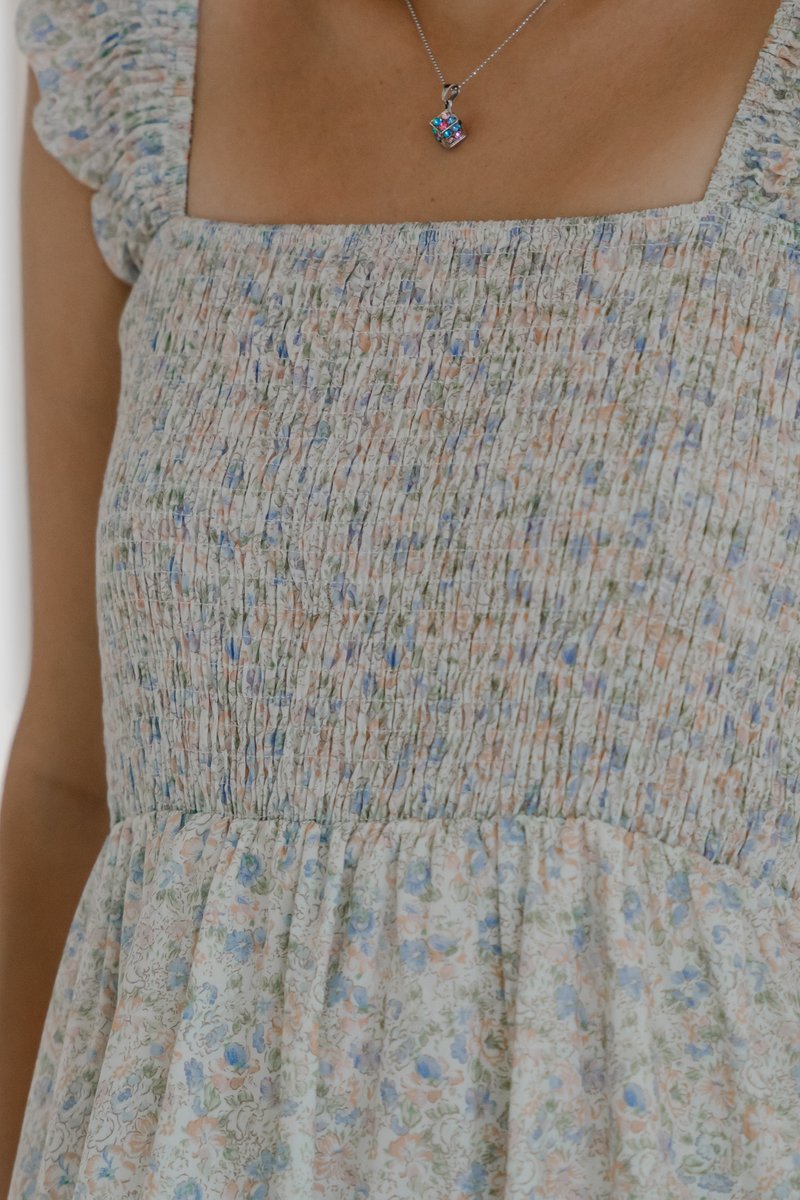 ACW Frill Strap Smock Tiered Midi Dress in White Pastel Florals