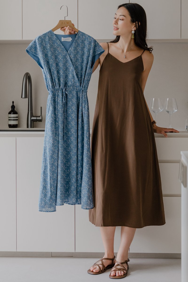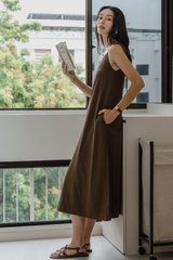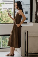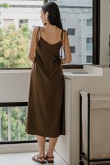 ACW Tie Strap Cami Midi Dress in Cocoa Brown