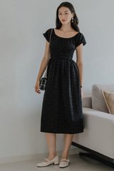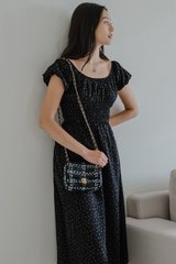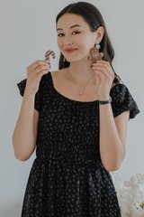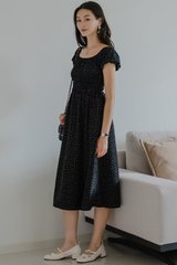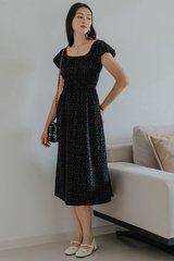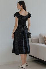 ACW Triple Smock Waist Scoop Neck Midi Dress in Black Floral