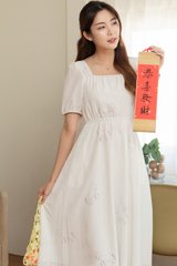 ACW Year of the Horse Square Neck Elastic Flowy Midi Dress