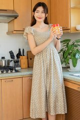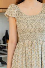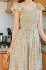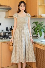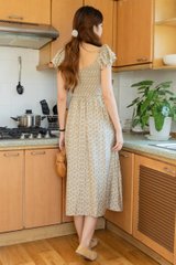 *Preorder - 31 Jan* ACW Smock Curve Neck Flutter Sleeve Midi Dress in Cream Pineapple