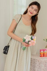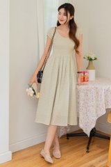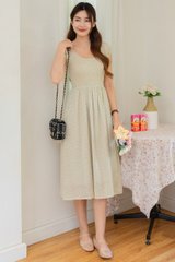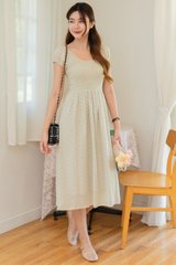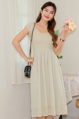 *Preorder - 6/7 Feb* ACW Eyelet U Neck Smock Midi Dress in Seafoam
