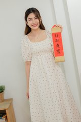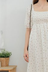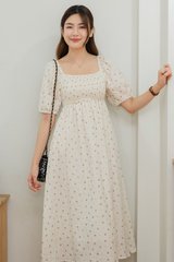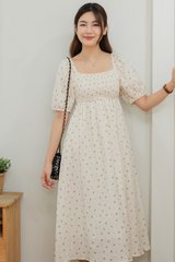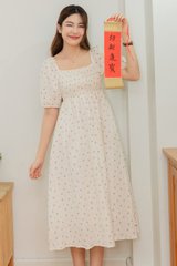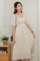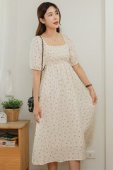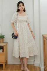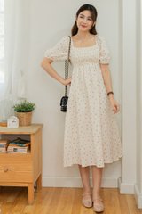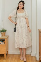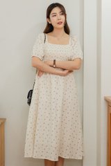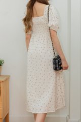 *Preorder - 8/9 Feb* ACW Curve Smock Balloon Sleeve Midi Dress in White Florals
