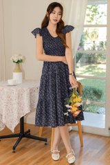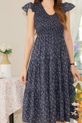 *Preorder - 8/9 Feb* ACW Flutter Sleeve Smocked Midi Dress in Navy Prints
