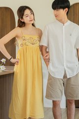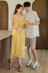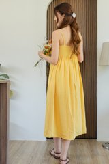 *Preorder - 8/9 Feb* ACW Rustic Panel Embroidery Flowy Cami Midi Dress in Daffodil