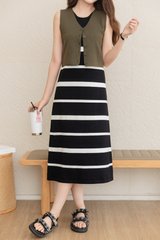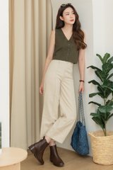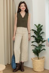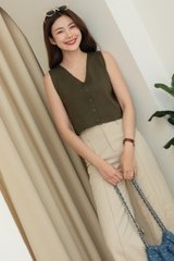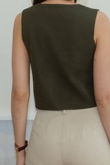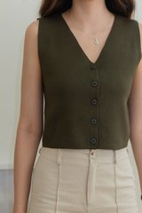 ACW Basic Button V Neck Knit Top in Dark Olive