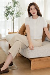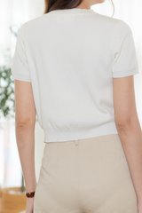 ACW Button Down Round Neck Sleeved Knit Top in White