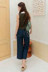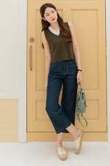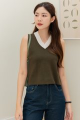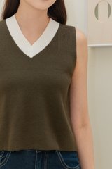 ACW Colourblock Panel V Neck Knit Top in Olive