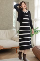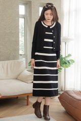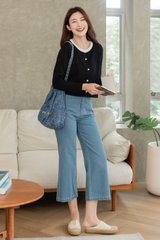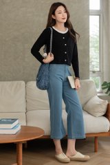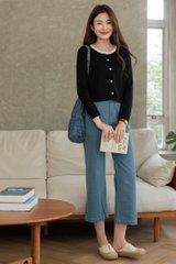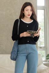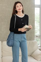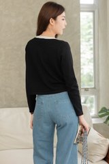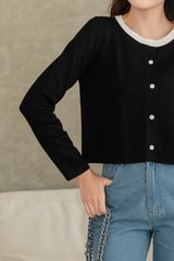 ACW Colourblock Trimming Button Down Cardigan in Black