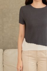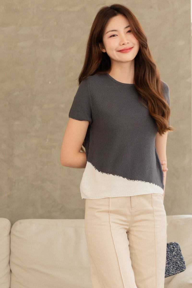 ACW Diagonal Colourblock Sleeve Knit Top in Dark Grey