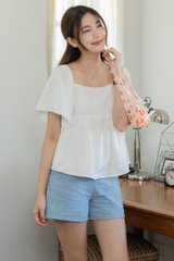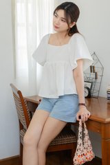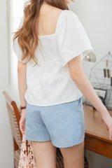 ACW Flutter Sleeve Smocked Babydoll Blouse in White