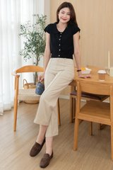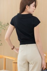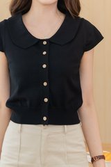 ACW Peterpan Collar Button Cap Sleeve Blouse in Black
