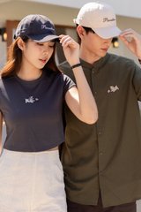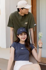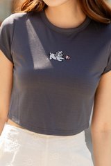 ACW Poker Card Pug Embroidered Round Neck Crop Top in Deep Ash Stone Blue