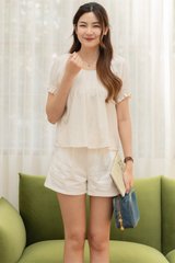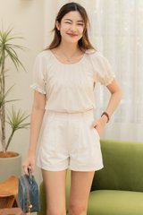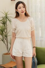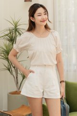 ACW U Neck Ruch Neckline Sleeve Top in Ivory