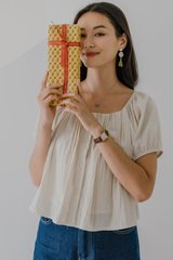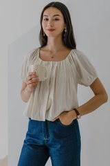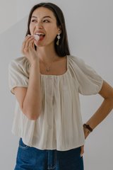 ACW Wide Neck Puff Sleeve Button Down Blouse in Ivory