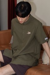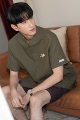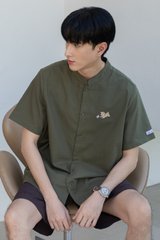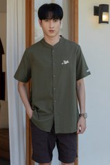 *Preorder - 6/7 Feb* ACW Poker Card Pug Mandarin Collar Men's Shirt in Olive