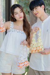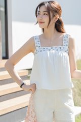 *Preorder - 8/9 Feb* ACW Embroidered Straps Square Neck Swing Top in White